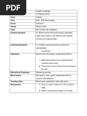 Contoh Rph Bahasa Inggeris Tahun 4 Pdf Lesson Plan Pedagogy